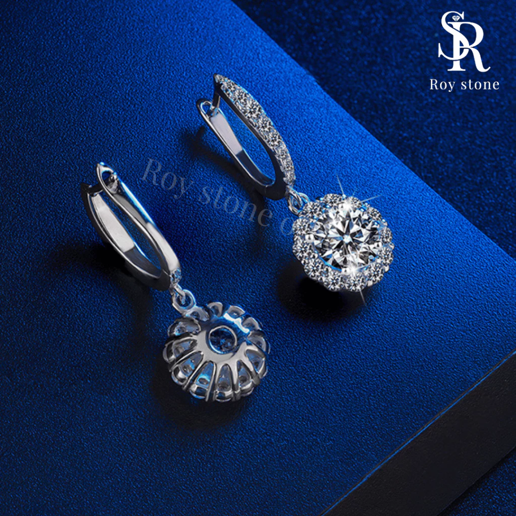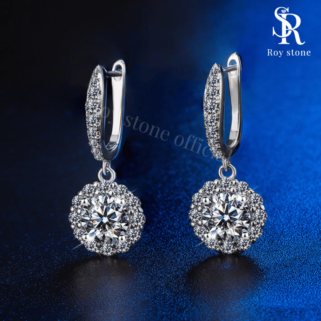 The Flower Moissanite Earrings feature a stunning floral design with D color grade and VVS1 clarity stones, offering exceptional brilliance. The round cut maximizes light reflection, making them a charming and elegant choice.