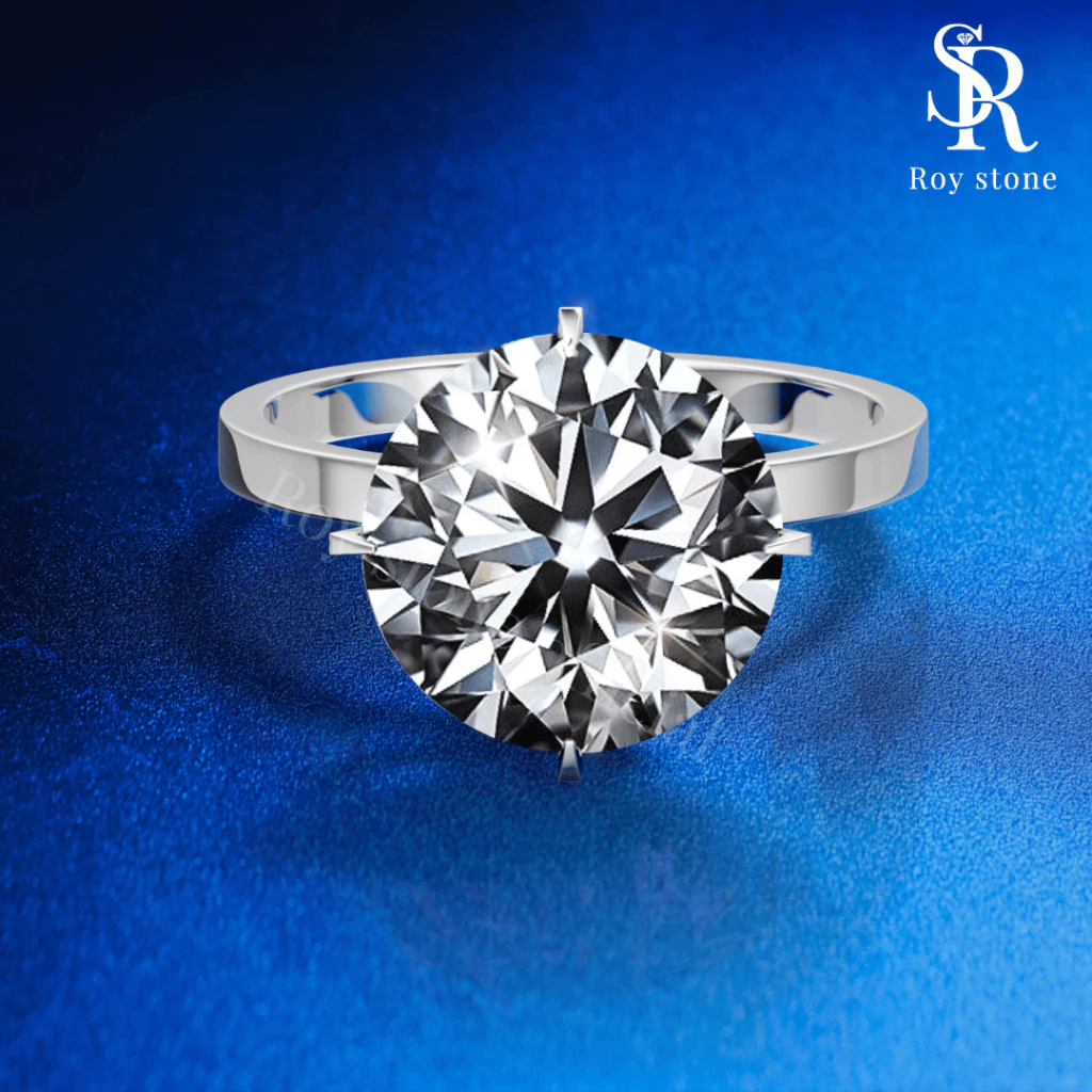 The Ella Moissanite Ring features a brilliant D color grade and VVS1 clarity, ensuring exceptional brilliance and a flawless appearance. The round cut enhances the brilliance, making it a radiant choice for any occasion.
