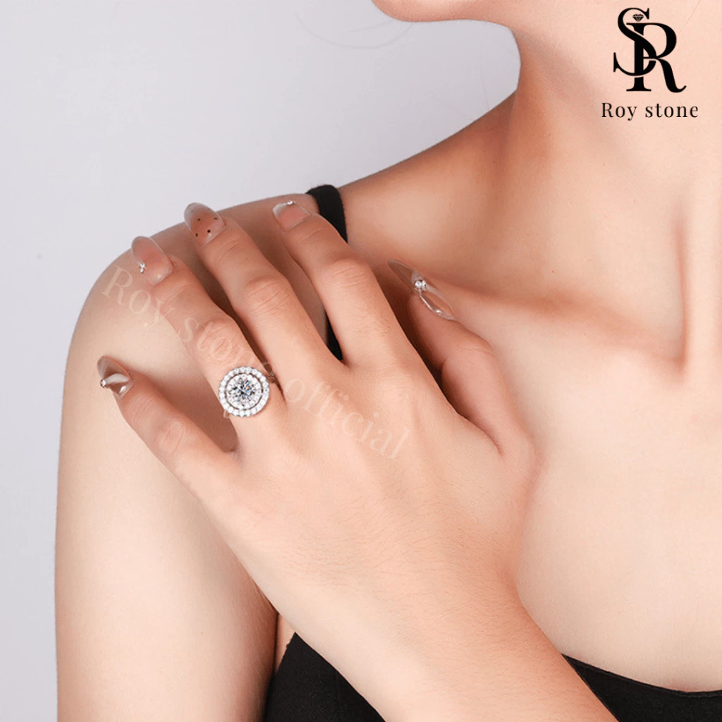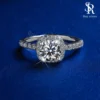 The Luminous Moissanite Ring combines a brilliant D color grade with VVS1 clarity, ensuring flawless brilliance and clarity. The round cut maximizes its shine, making it a radiant and timeless piece.