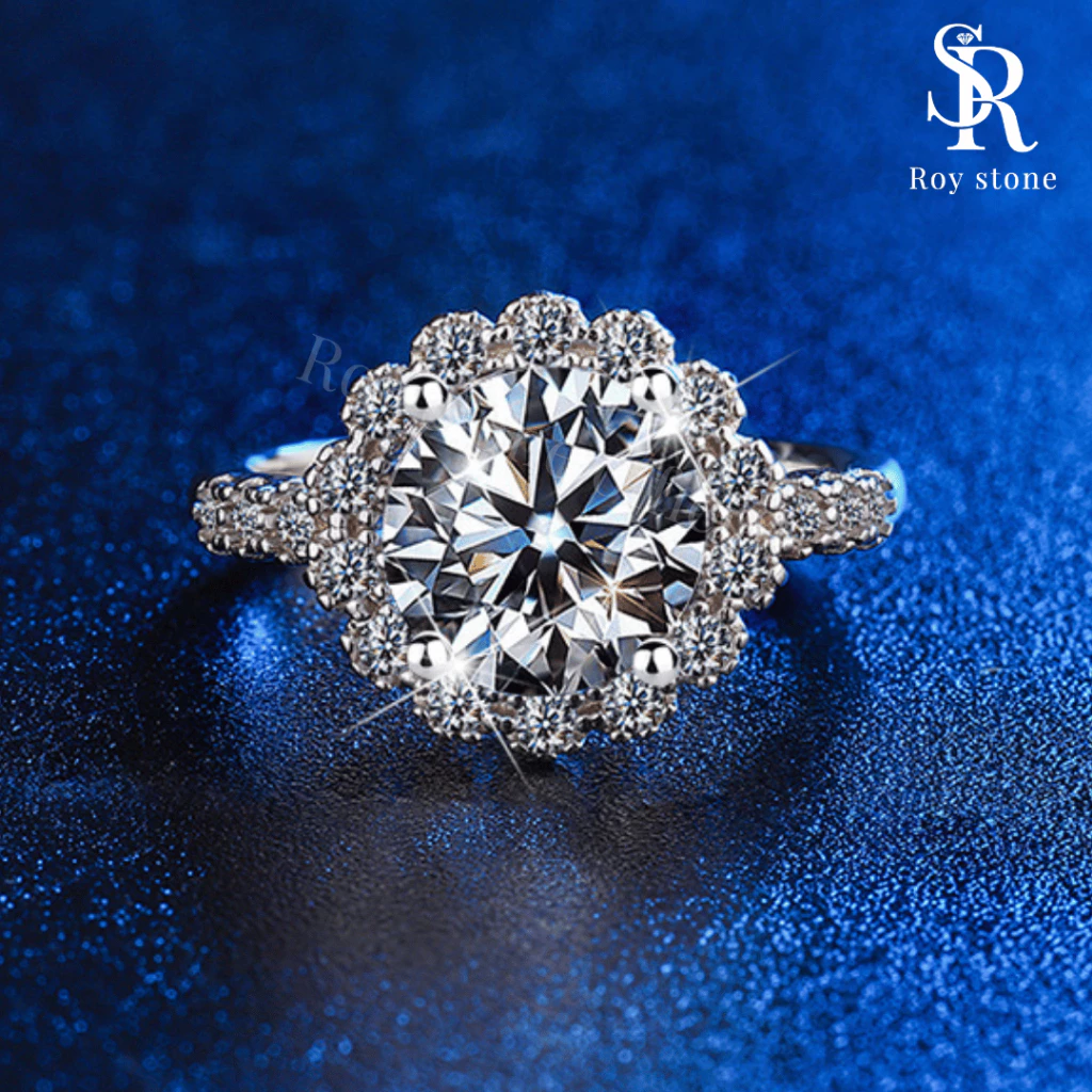 The Sunny Moissanite Ring features a D color grade and VVS1 clarity, offering brilliant sparkle and clarity. The round cut enhances its shine, creating a beautiful and radiant design.