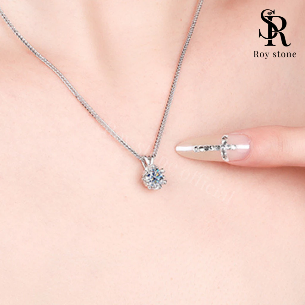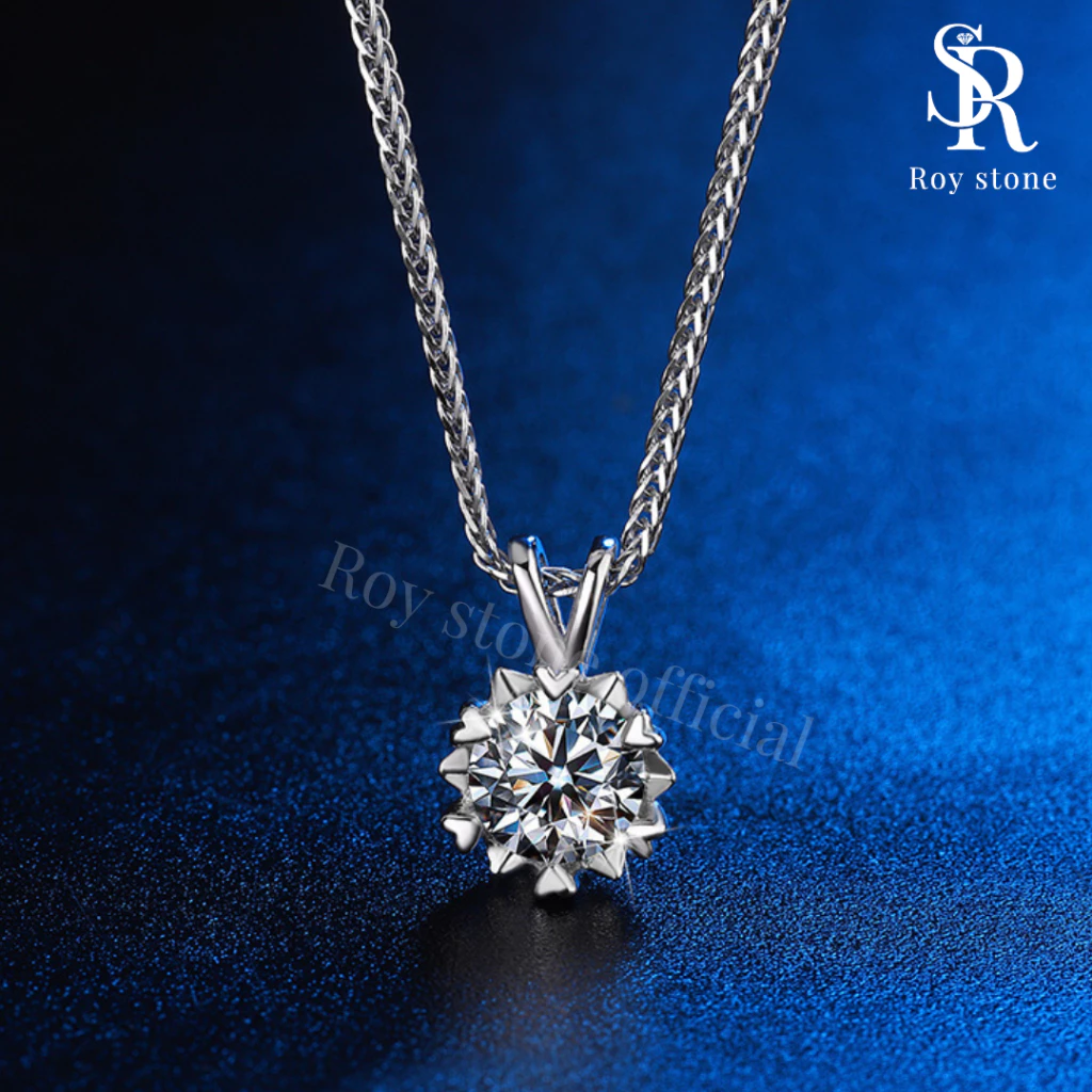 The Vionna Moissanite Necklace features a brilliant round cut with D color grade and VVS1 clarity, ensuring flawless brilliance. Its elegant design makes it the perfect accessory for sophisticated, modern looks.
